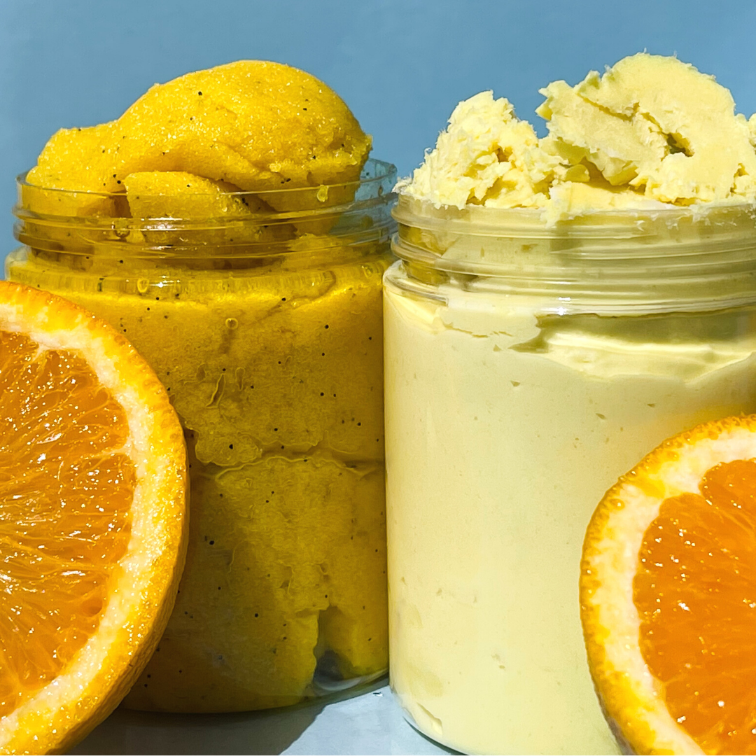 Comes with one turmeric butter and one turmeric scrub. You may select 2oz or 4oz and unscented or scented (lemongrass).